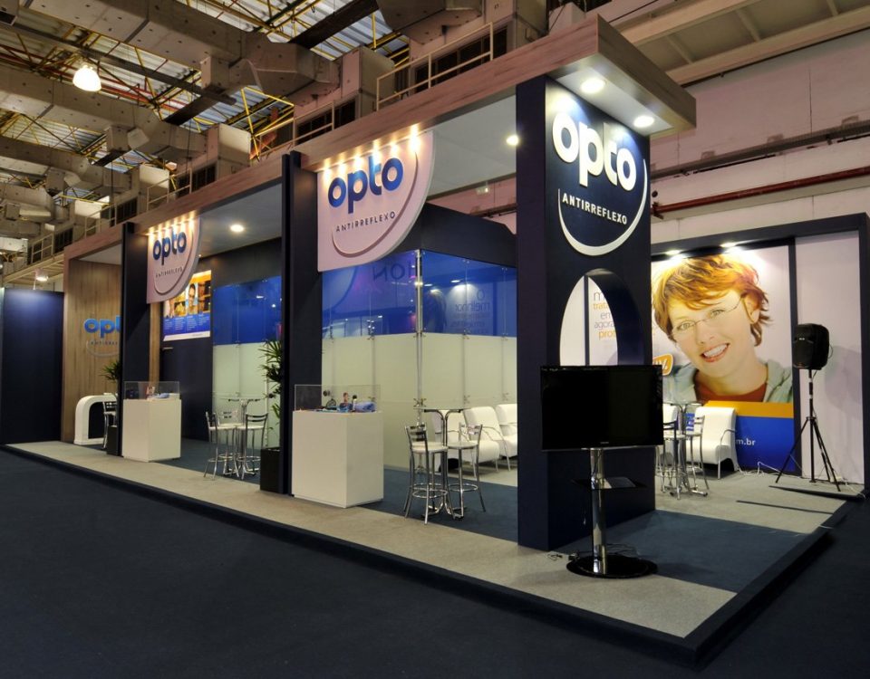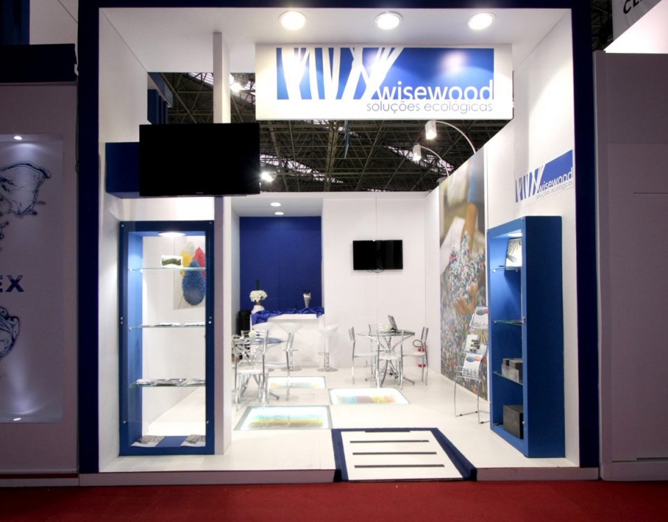 Stand ILHA - Modelo construído com mdf madeirado no piso