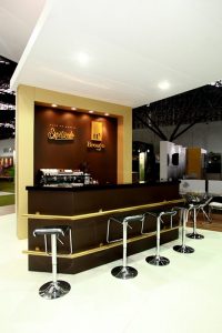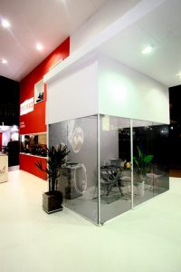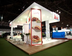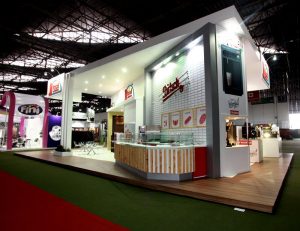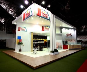 Stand construído, em formato de ilha, com 160m²